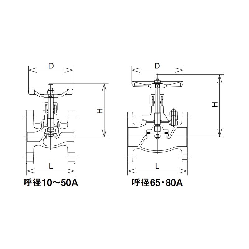 10A、65A、80Aはメーカー規定。15~50AはJIS B 2051。
