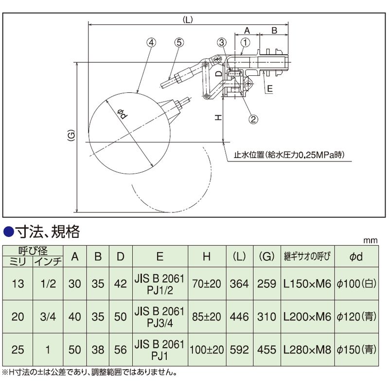 機器タンク内の水位を一定水位に保つ際に使用し、給湯器・太陽熱温水器・受水槽・クーリングタワー・消火水槽等の使用に適しています。
