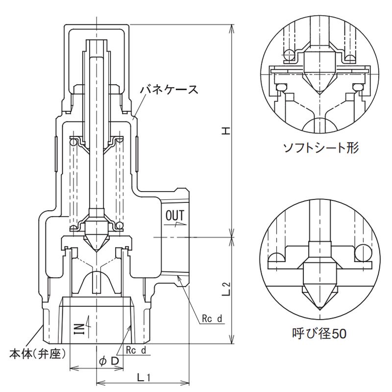 青銅のバネケースと、要部SCS、バネSUSの耐食性に優れた、密閉タイプの安全逃し弁です。