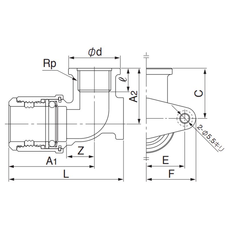 ソロバンダイツキWL 台付給水栓エルボ そろばん継手