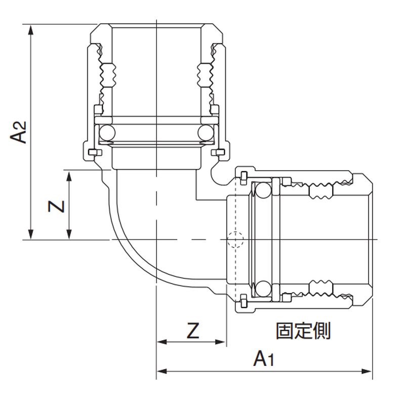 ソロバンカタクチコテイL 片口固定エルボ そろばん継手