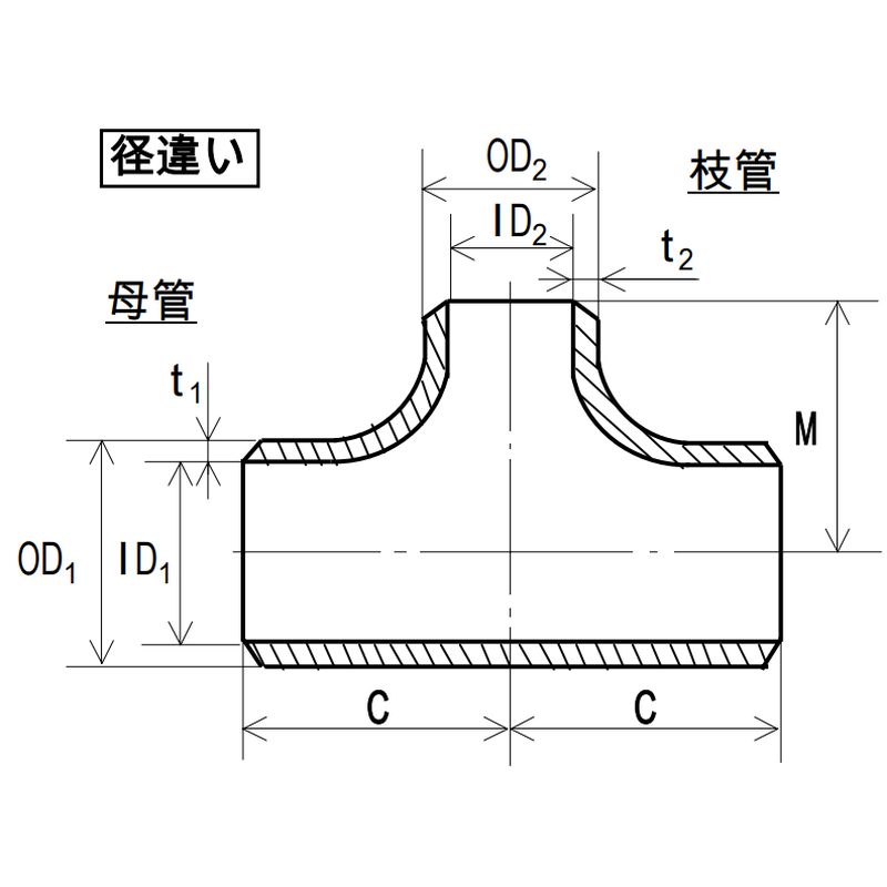 白 PT370 S/40 RT 異径チーズ 突合せ溶接管式継手