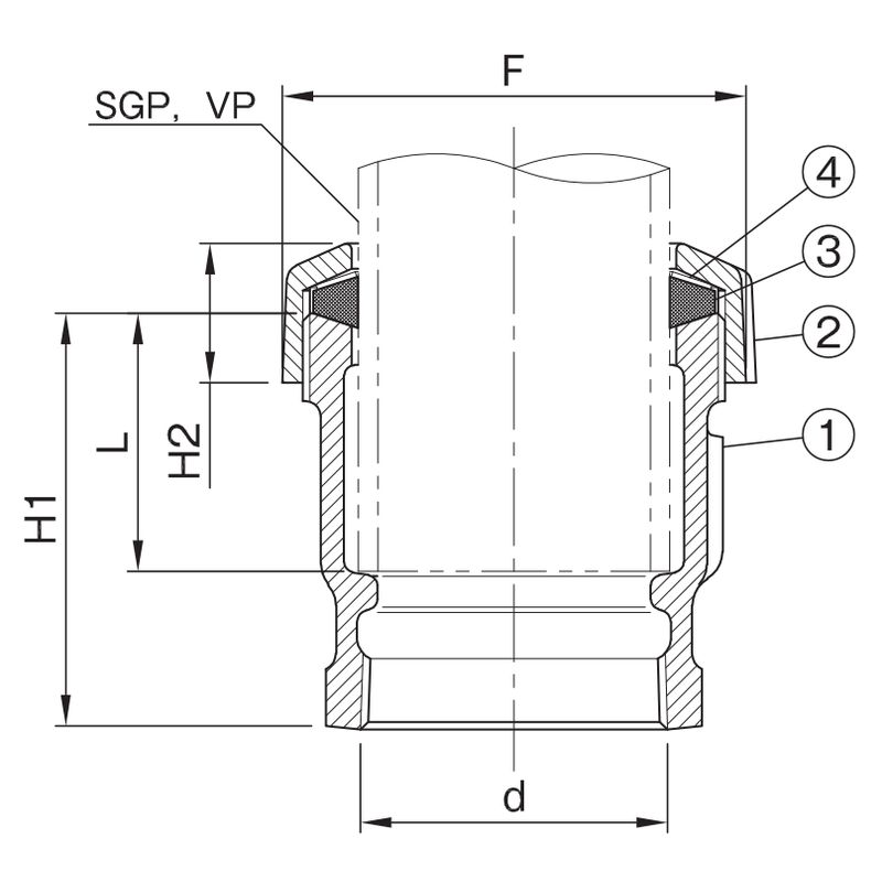 JPF DF 001排水用ねじ込み式鋳鉄製管継手