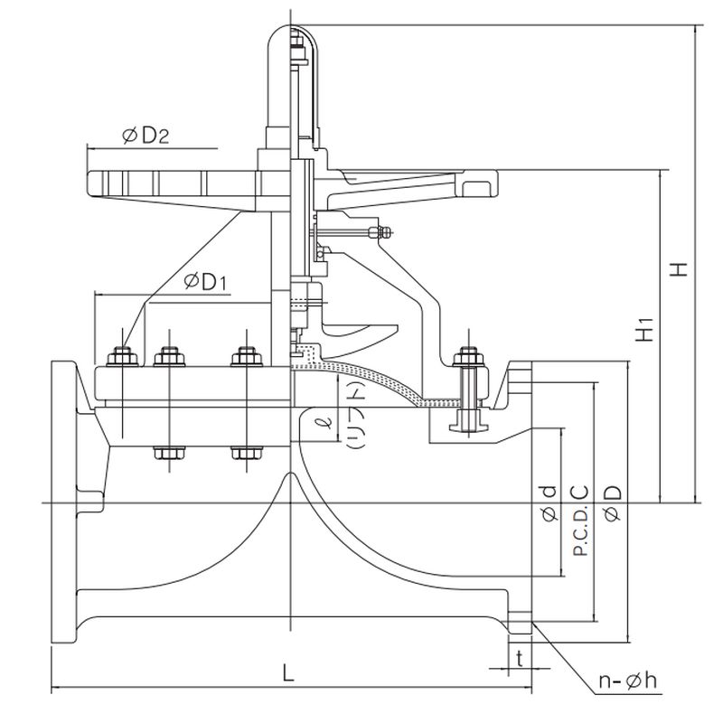 V15MHPEF1 ダイヤフラムバルブ15型 (フランジ形・PP・JIS10K)