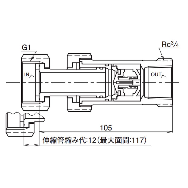 管端コア取付け可能ですから、赤水の発生を防止します。