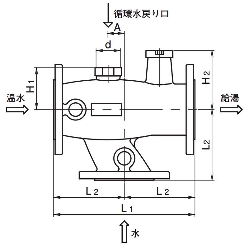 最高温度は内蔵されているサーモエレメント部の耐温となります。特に温水側の温度にはご注意ください。