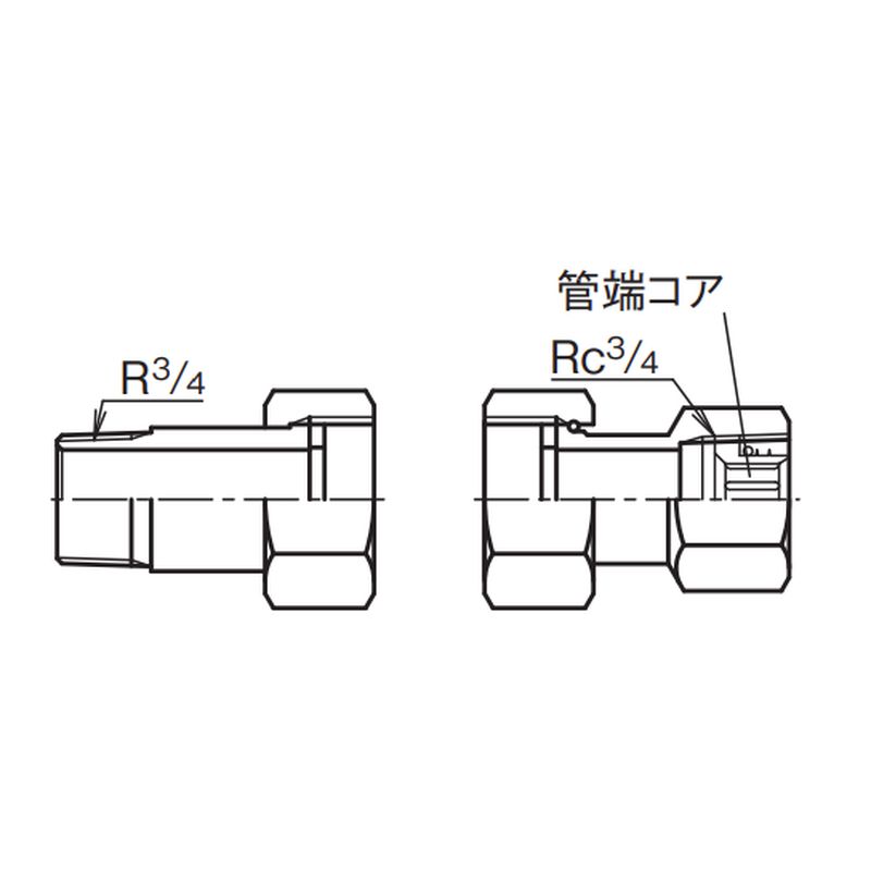 めねじ部に管端コア内臓