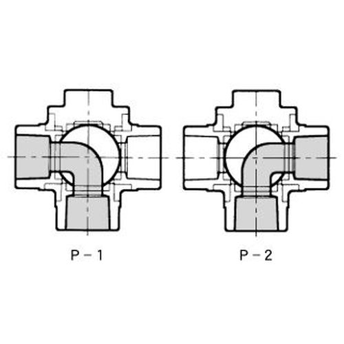 流路方向はT型、L型の2種類を用意しております。用途により選定してください。