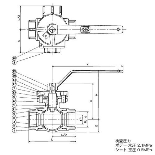 N-730 10K S式三方切換ボールバルブ(四面シート)Tポート SCS13