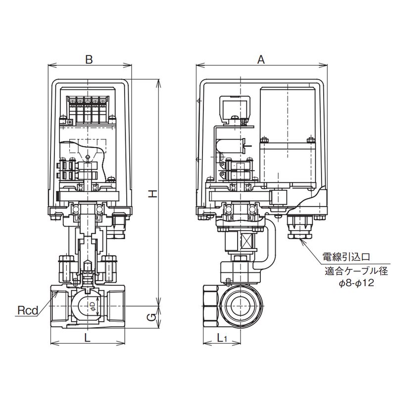 3BM1S-F ボール式三方電動弁(液体・空気・気体用)