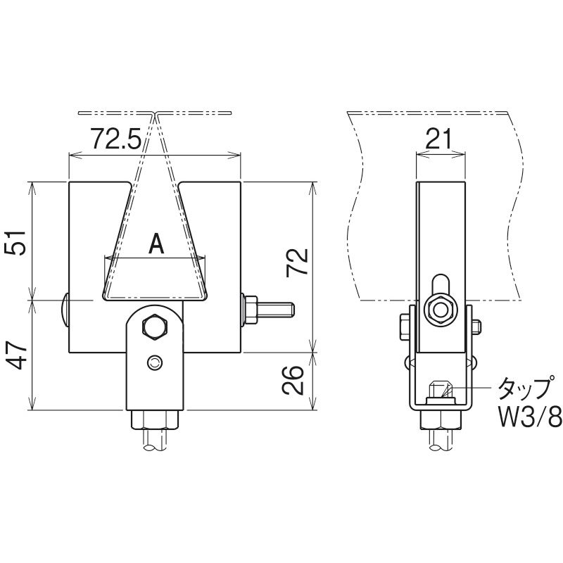 吊りボルトはタップねじ上端より3山以上突出させ、附属の六角ナットでゆるみ止めをしてください。ゆるみ、落下の恐れがあります。