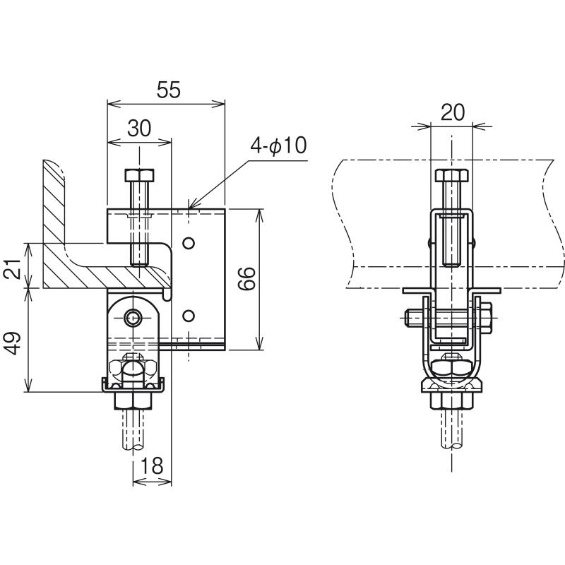 HB1S 一般形鋼・リップみぞ形鋼用吊りボルト支持金具