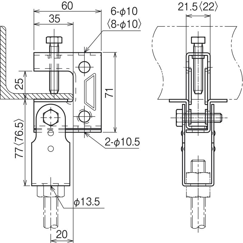 HB1-W4 一般形鋼・リップみぞ形鋼用吊りボルト支持金具