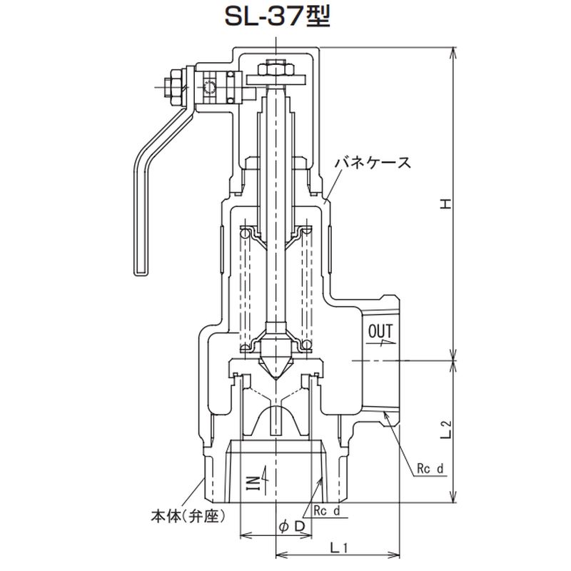 青銅のバネケースと、要部SCS、バネSUSの耐食性に優れた、密閉タイプの安全逃し弁です。