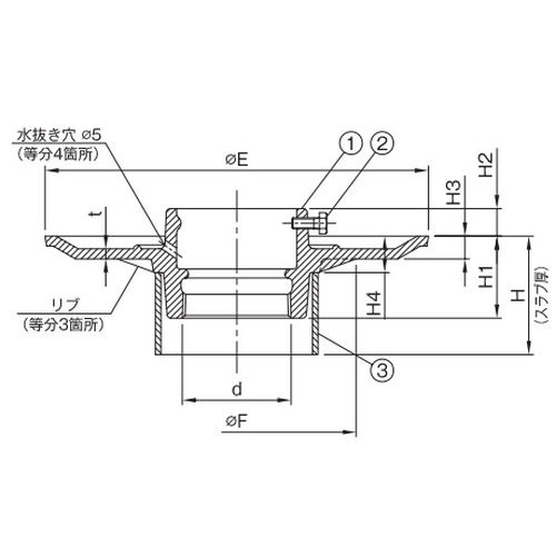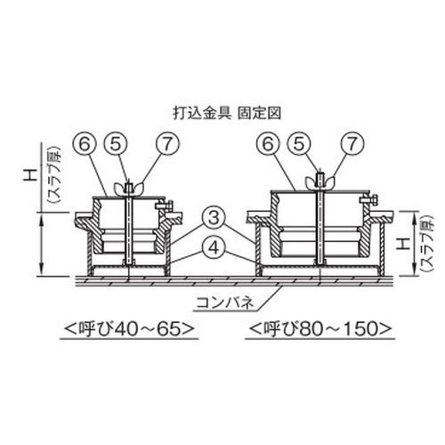<呼び80>以上のサイズは、部番3スペーサーの設置箇所が防水ツバの裏面となります。