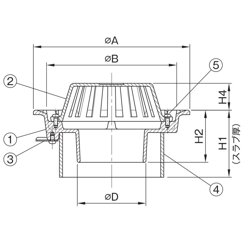 RMV-BK ルーフドレン 差し込み式 モルタル防水 ・ 塗膜防水用 打込型