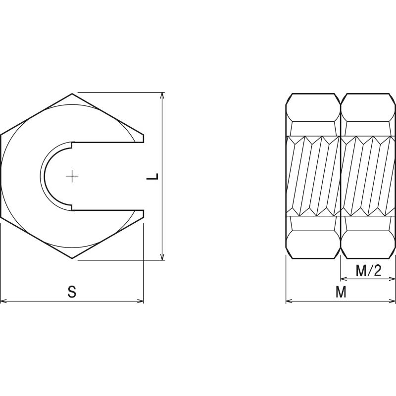 ボルトへ挿入した後は2枚のナットの開口を閉じた状態にして、締め付けてください。強度低下により外れる恐れがあります。