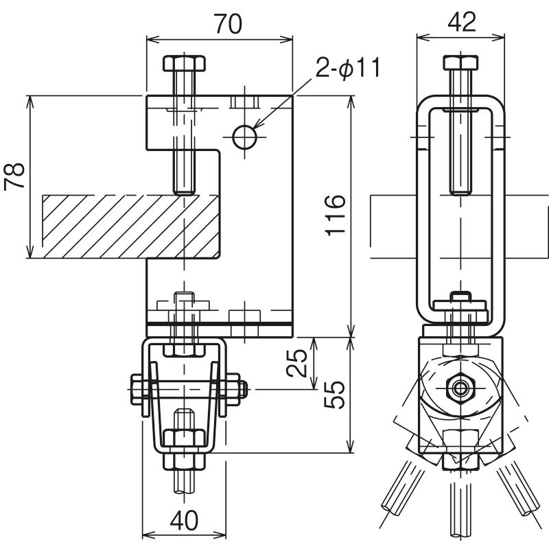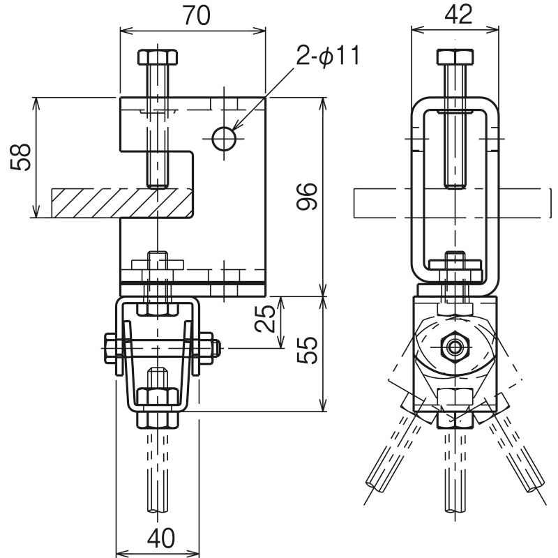 HBTS1・2 一般形鋼用吊りボルト支持金具