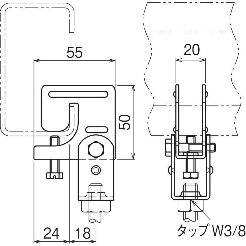 BC5T-W3 リップみぞ形鋼用吊りボルト支持金具