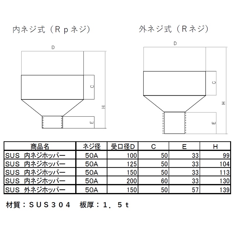 IVL-ホッパ-ウチSUS-50Ax200