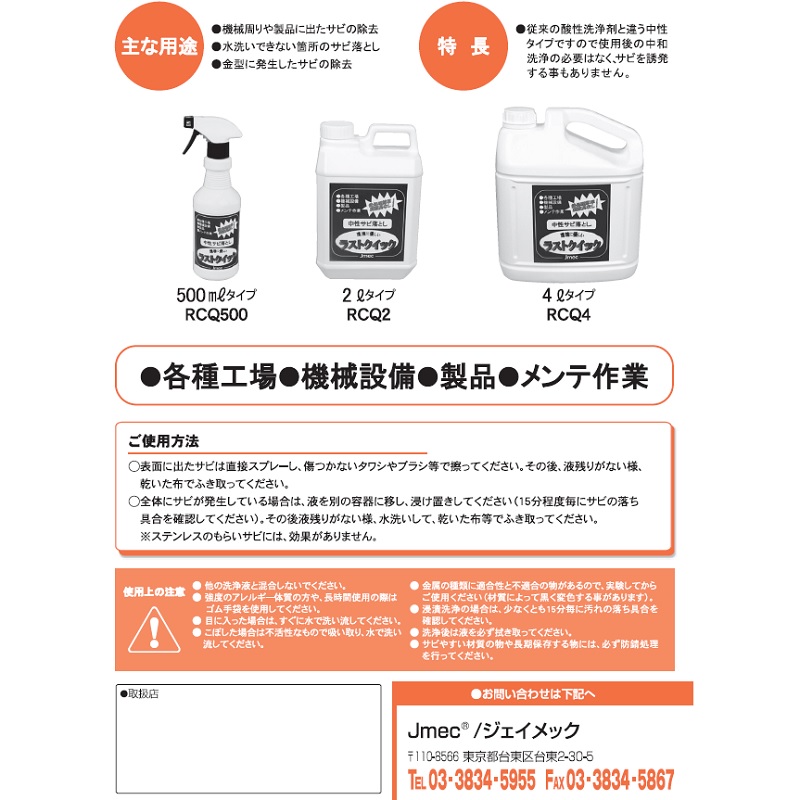 Jmec 藤川伝導機 RCQ2 サビ落とし ラストクイック(2リットル)