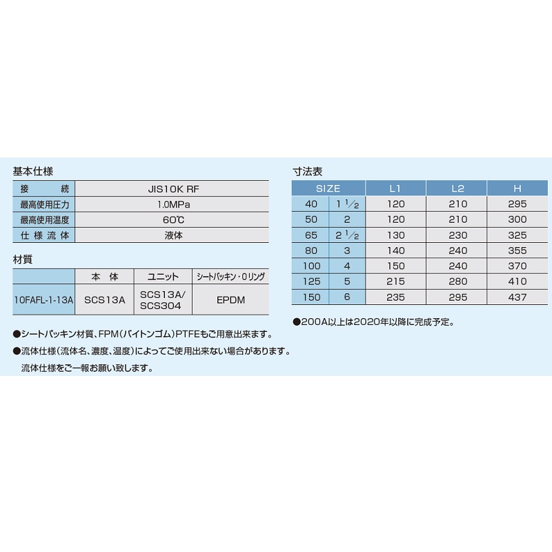 流体仕様(流体名、濃度、温度)によってご使用出来ない場合があります。