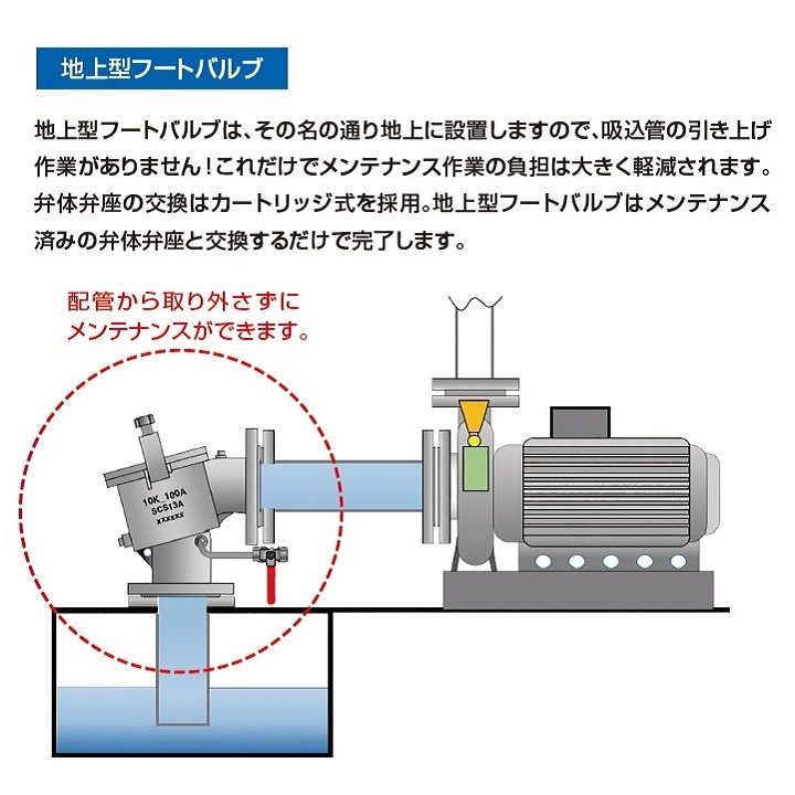 従来の底フートバルブにより低圧損を実現しました。