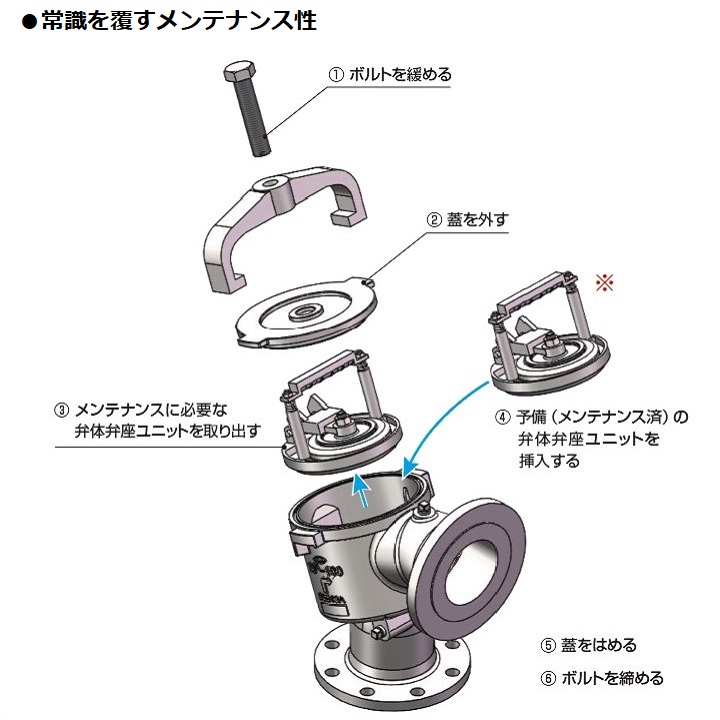 バルブ本体特殊構造にてポンプメーカーが嫌うエアー溜まりを徹底的に無くしました。