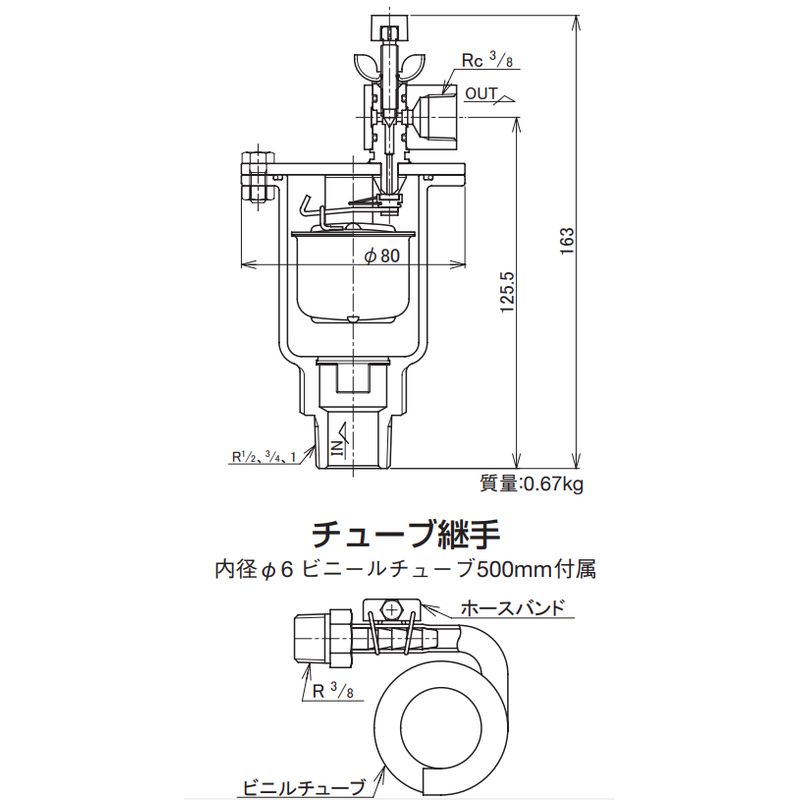 出口:JIS Rc3/8ねじ