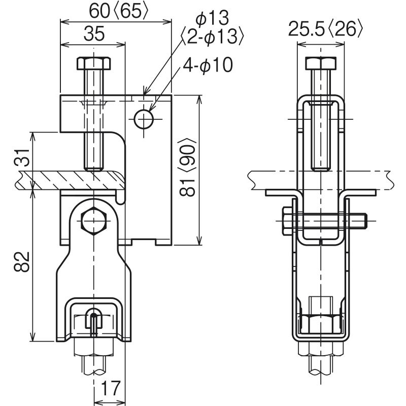 HB25T-W4 一般形鋼用吊りボルト支持金具