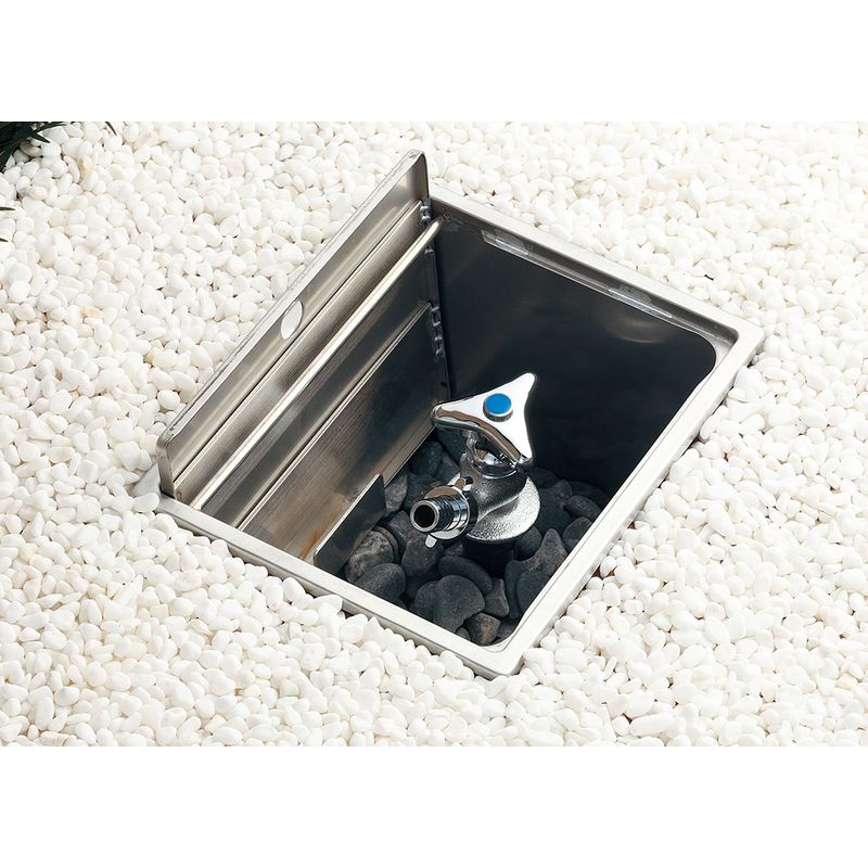 水栓使用時、ボックス内へフタを収納できるため邪魔になりません。