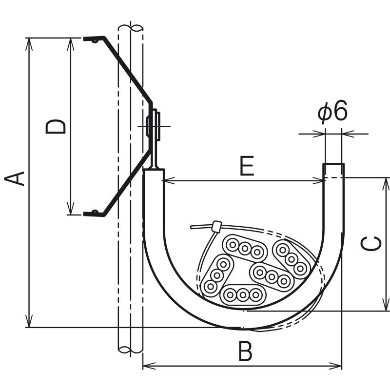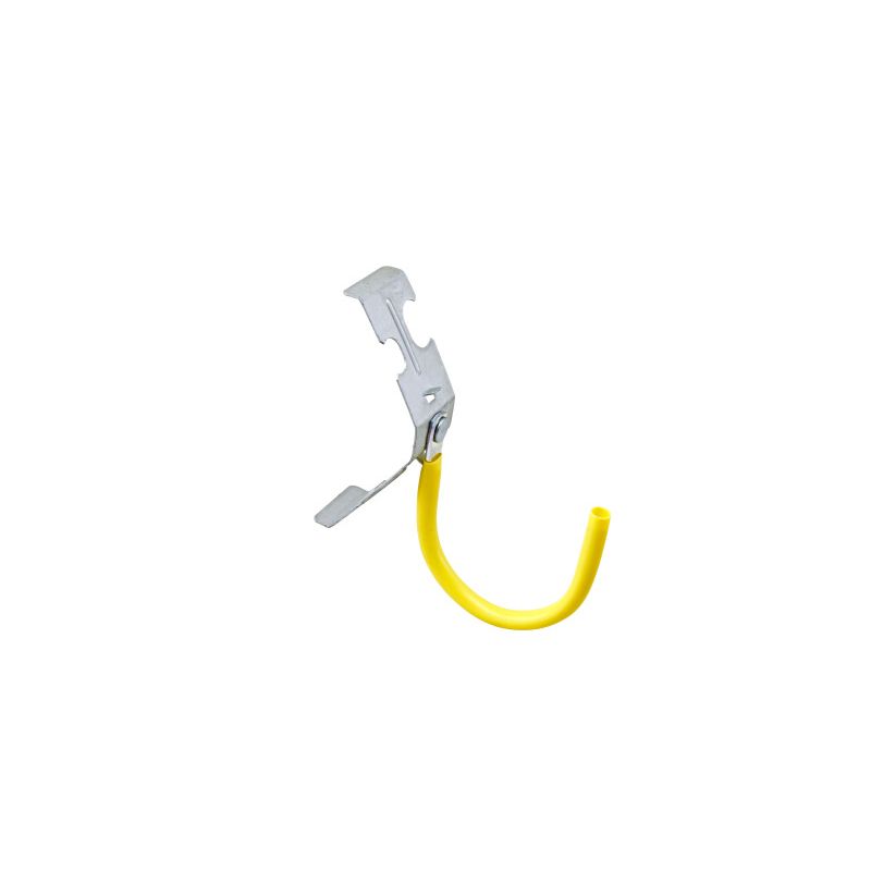 吊りボルトへ固定するクリップ部と、ケーブル支持のフック部を一体化。組み合わせの手間がいりません。
