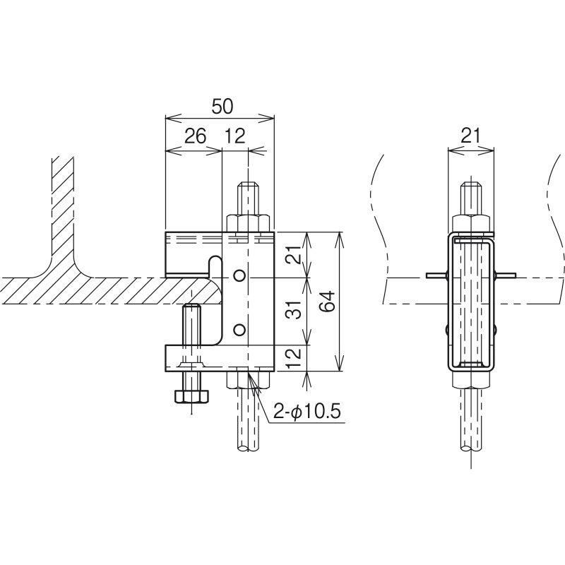 吊りボルトは、垂直に吊り下げてください。すべり、落下の恐れがあります。