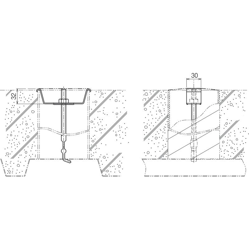中心部にフックボルト又は、穴が見えますのでデッキプレート穴抜き加工の目標になります。