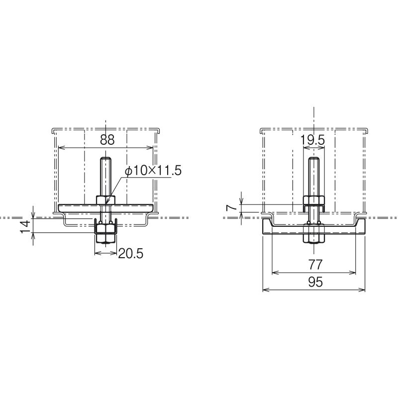 スラブ打設時等に、金具が踏まれても変形しにくい、強力型です。