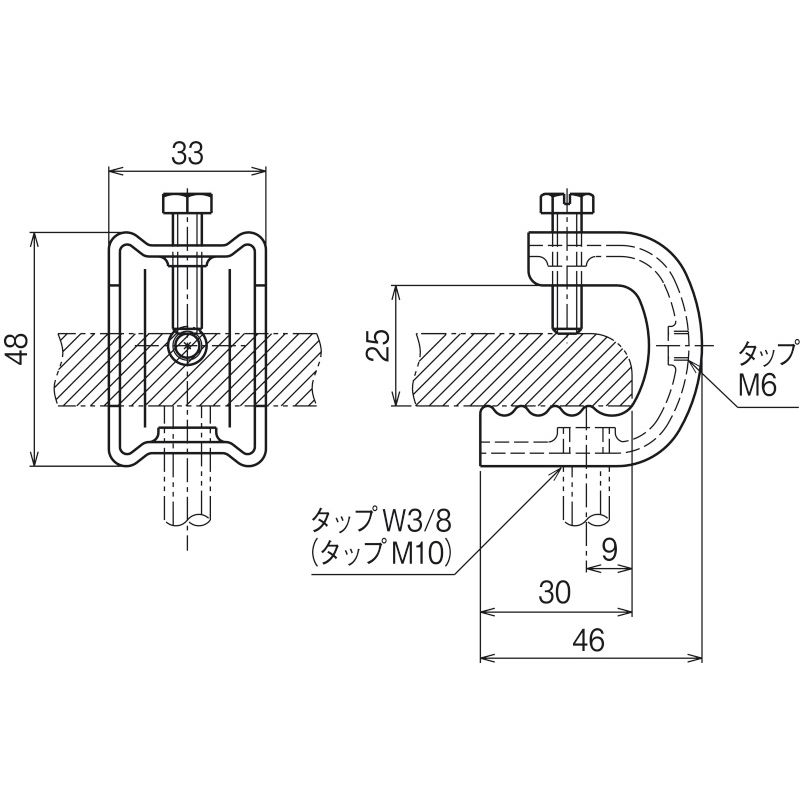 吊りボルトW3/8、M10とタップM6での併用支持はしないでください。