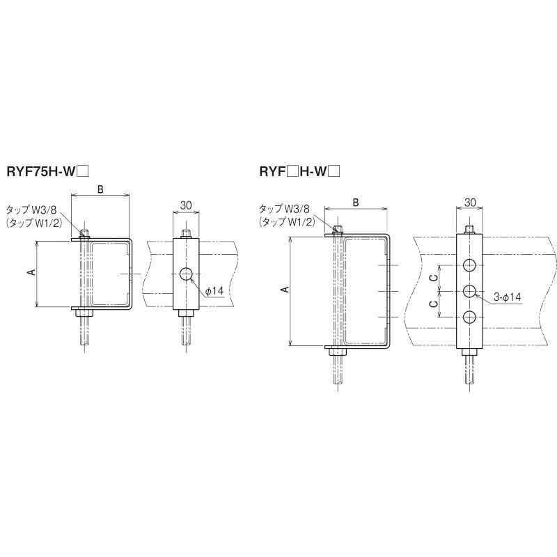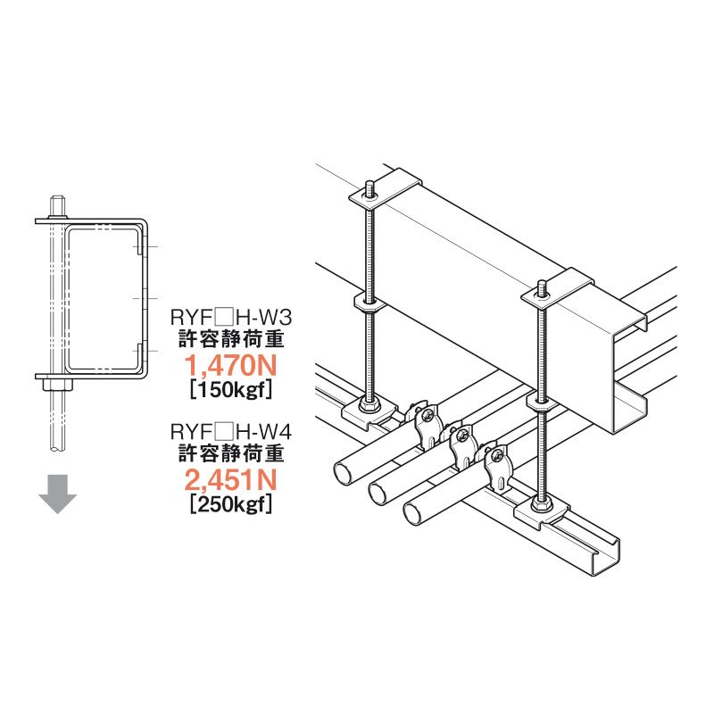RYF□H リップみぞ形鋼用吊りボルト支持金具