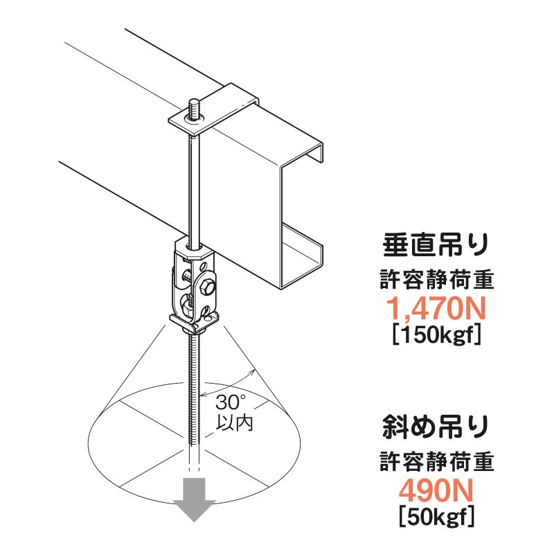 下部金具に吊りボルトをセットした状態でリップみぞ形鋼に固定できます。