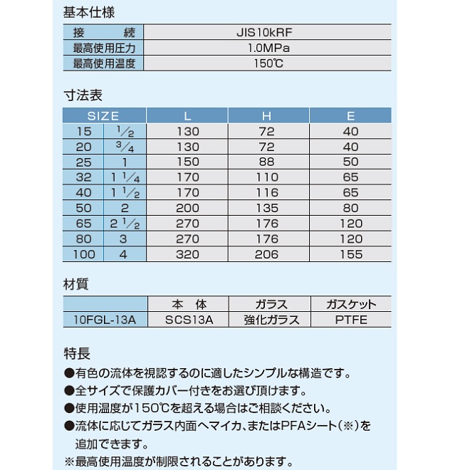10FGL-C-13A フランジ式サイトグラス 透視式 保護カバー付
