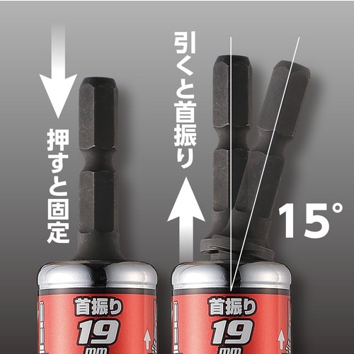 ●トルク伝達に優れた首振り15度設計でソケットが暴れずナットを傷めにくい