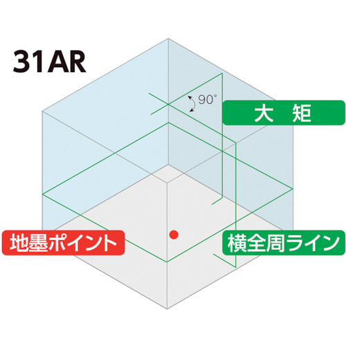 床から15mmの位置で横ライン照射ができます。