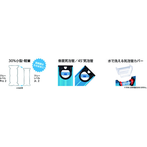(100mmのみ45°気泡管なし)・ブルーレベルProと比較して30%小型・軽量化しています。