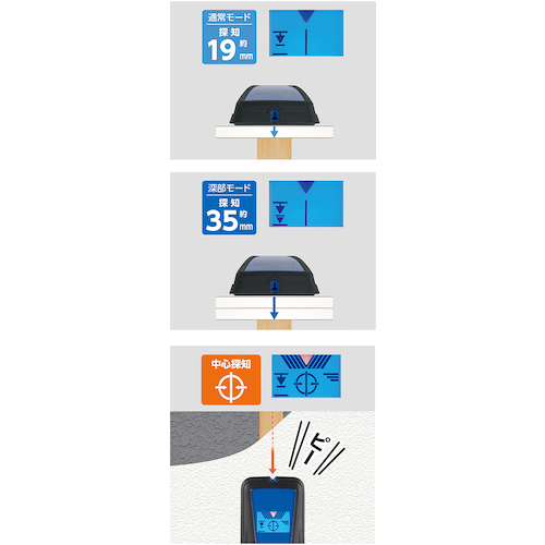 壁に穴を開けることなく、壁裏の下地材を探すことができます。
