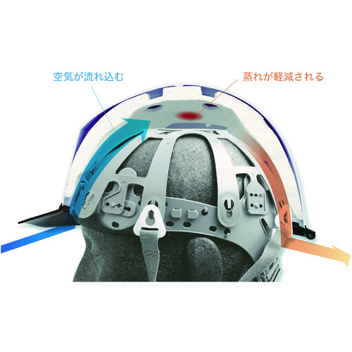 頭部から側面に回り込む、力強くシャープなリブ形状が帽体の強度バランスを向上させ、衝撃を分散します。