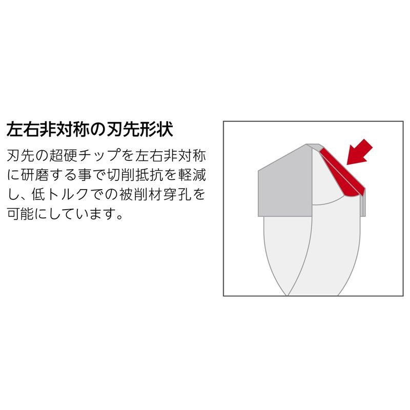 被削材に鋭く食い込むので、回転のみでも抜群の穿孔力を発揮します。