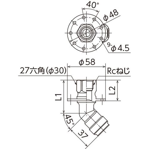 継手を回転し、ビスの固定位置を変えることで配管方向を左右へ簡単に調節できます。