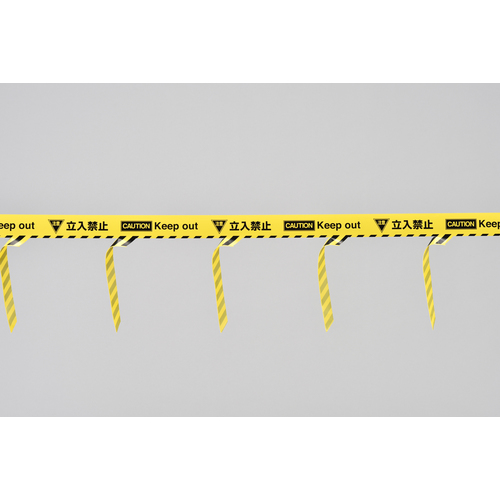 日本語と英語の2ヶ国語表記で立入制限箇所を表示する、非粘着タイプの標識テープです。