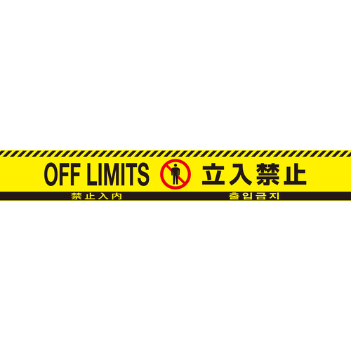 日本語、英語、中国語、韓国語の4ヶ国語が表記された標識テープです。