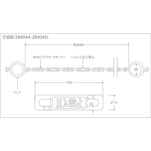 284046 コーン用高輝度蓄光プラスチックチェーン(リング付) CHB-FL 長さ2m PE