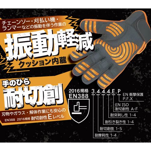 手の平耐切創で刃物やガラス、解体作業に安心。